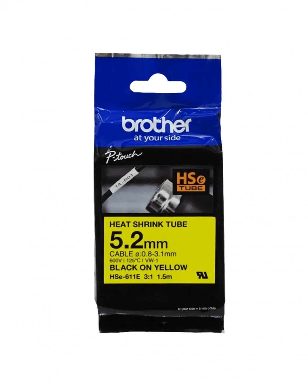 HSe611e. Tubo BROTHER 5,2mm Am Termo retráctil 0,8-3,1mm Negro en Amarillo de 1,5mt